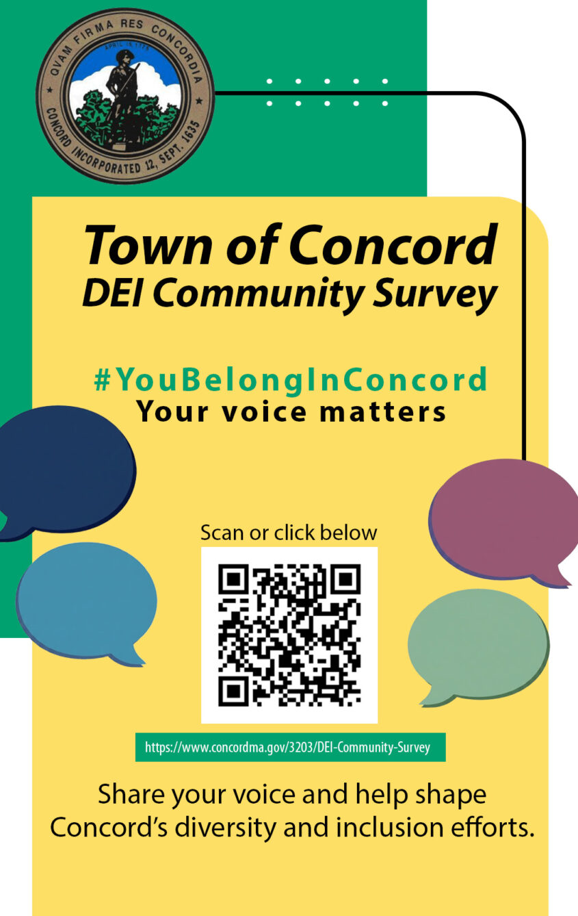 The town’s Diversity, Equity, and Inclusion Commission has launched a community survey to find out what it actually feels like to live, work, or study in Concord. Not what we assume. Not what we’ve always heard. What people actually experience day to day.