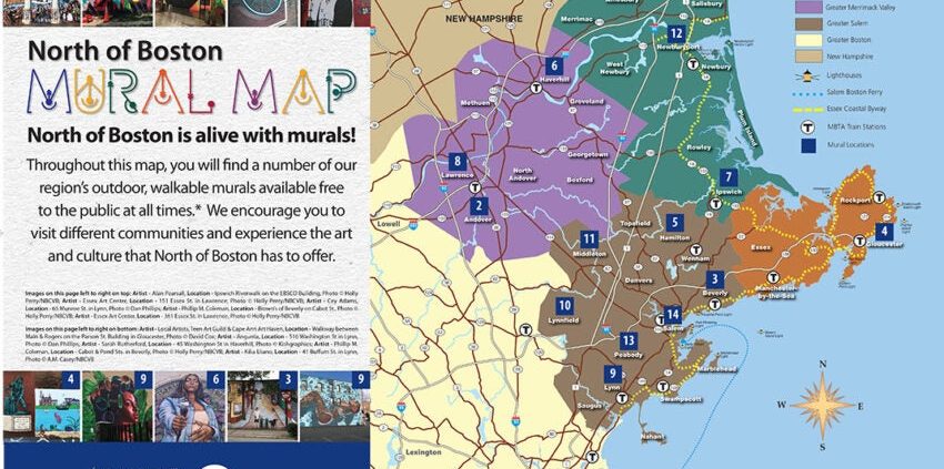 “In April, the North of Boston Convention & Visitors Bureau launched a ‘North of Boston Mural Map’ highlighting the artwork displayed on buildings across communities north of Boston. It’s the perfect social distancing activity this season as folks head outside to explore their communities, according to Ann Marie Casey, executive director of the North of Boston.” (see full article in Boston.com)
