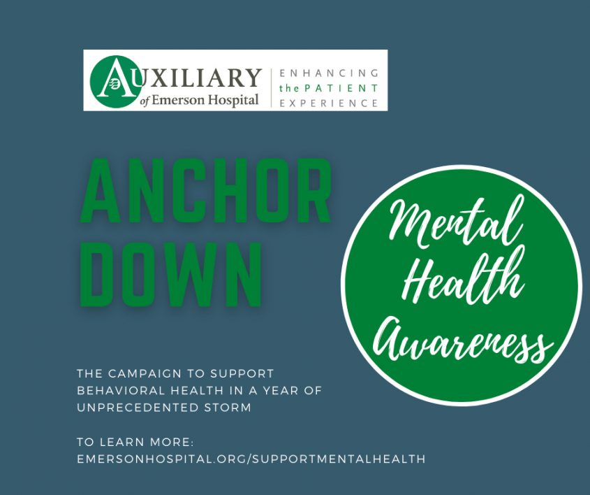 Behavioral Health concerns are at an all-time high in our communities. Many Behavioral Health patients will be treated in Emerson Hospital’s emergency department or, in the case of adult patients, the specialty floor. The Auxiliary of Emerson Hospital would normally support the needs of the Behavioral Health Department at Emerson Hospital by holding our annual fundraiser, EmerSong. Due to COVID-19 safety concerns, we could not plan this event. In its stead, we have produced Anchor Down – a campaign of videos and a website that will educate, inform and raise funds for specific needs within Behavioral Health at Emerson Hospital.