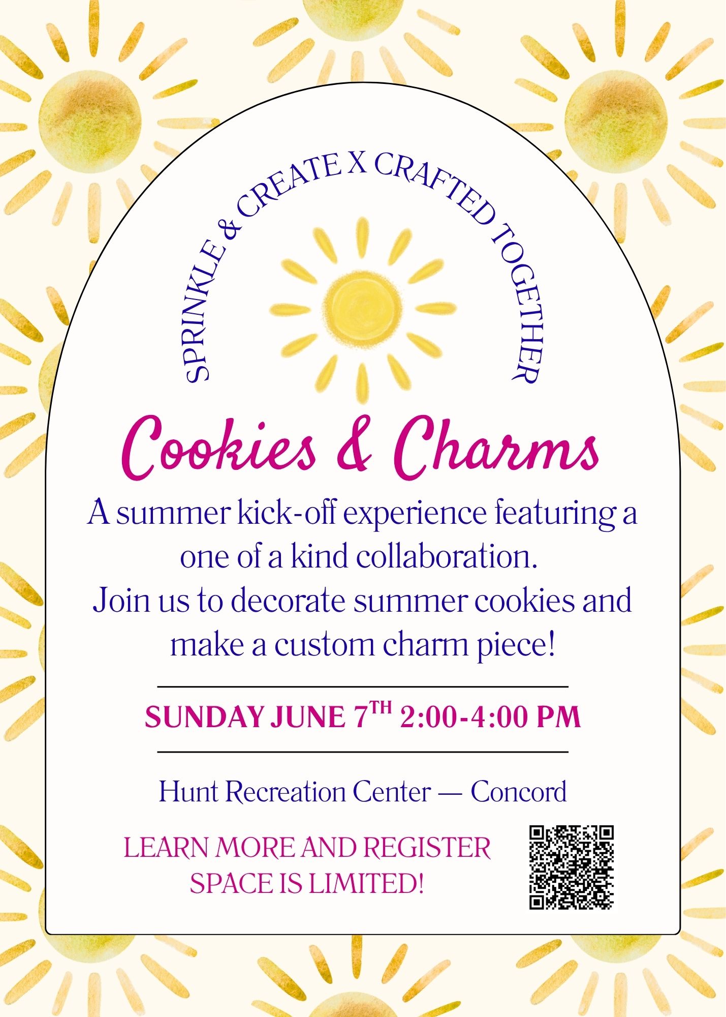 Kick off summer with a one-of-a-kind creative experience! In this special collaboration between Sprinkle & Create and Crafted Together, participants will enjoy a thoughtfully designed, hands-on workshop that blends cookie decorating with custom charm making.