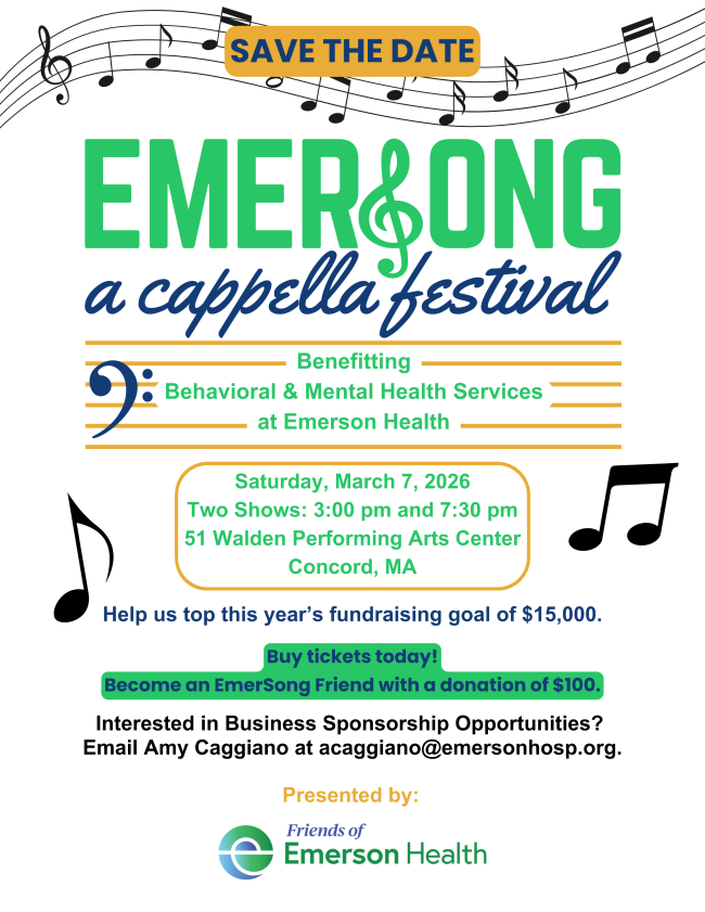 Benefitting behavioral and mental health services at Emerson Health Two shows: 3PM and 7:30PM at 51 Walden