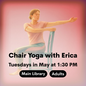 Chair Yoga with Erica at the Main Library May 26 Chair Yoga with Erica at the Main Library 1:30 pm - 2:30 pm Free