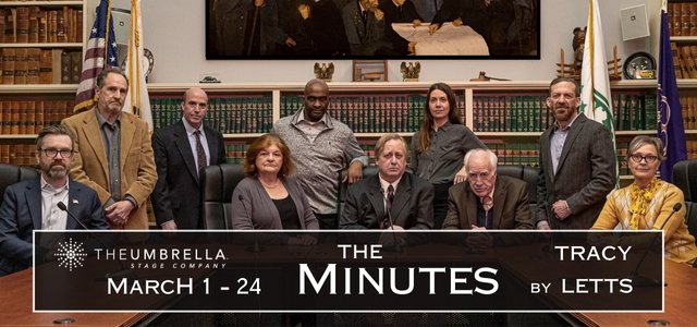 The Umbrella Arts Center is proud to present the Greater Boston premiere of The Minutes by award-winning playwright Tracy Letts (August: Osage County), called one of the most thrilling on Broadway in recent years. Nominated as Best New Play by the Tony Awards and Outer Critics Circle in 2022, and for the Pulitzer Prize in drama, The Minutes is part biting comedy, part Hitchcockian mystery, and at its dark heart an unflinching allegory about small-town politics and real-world power.